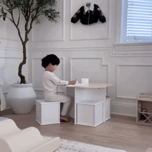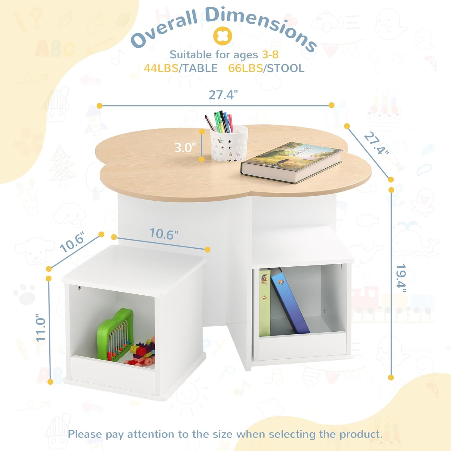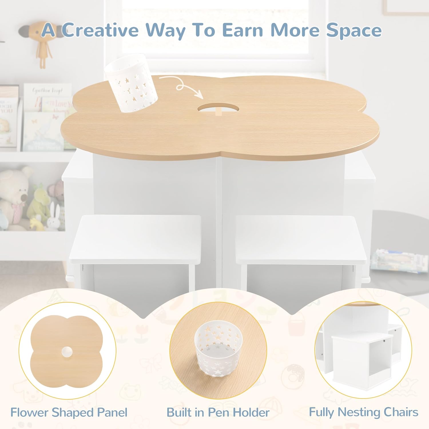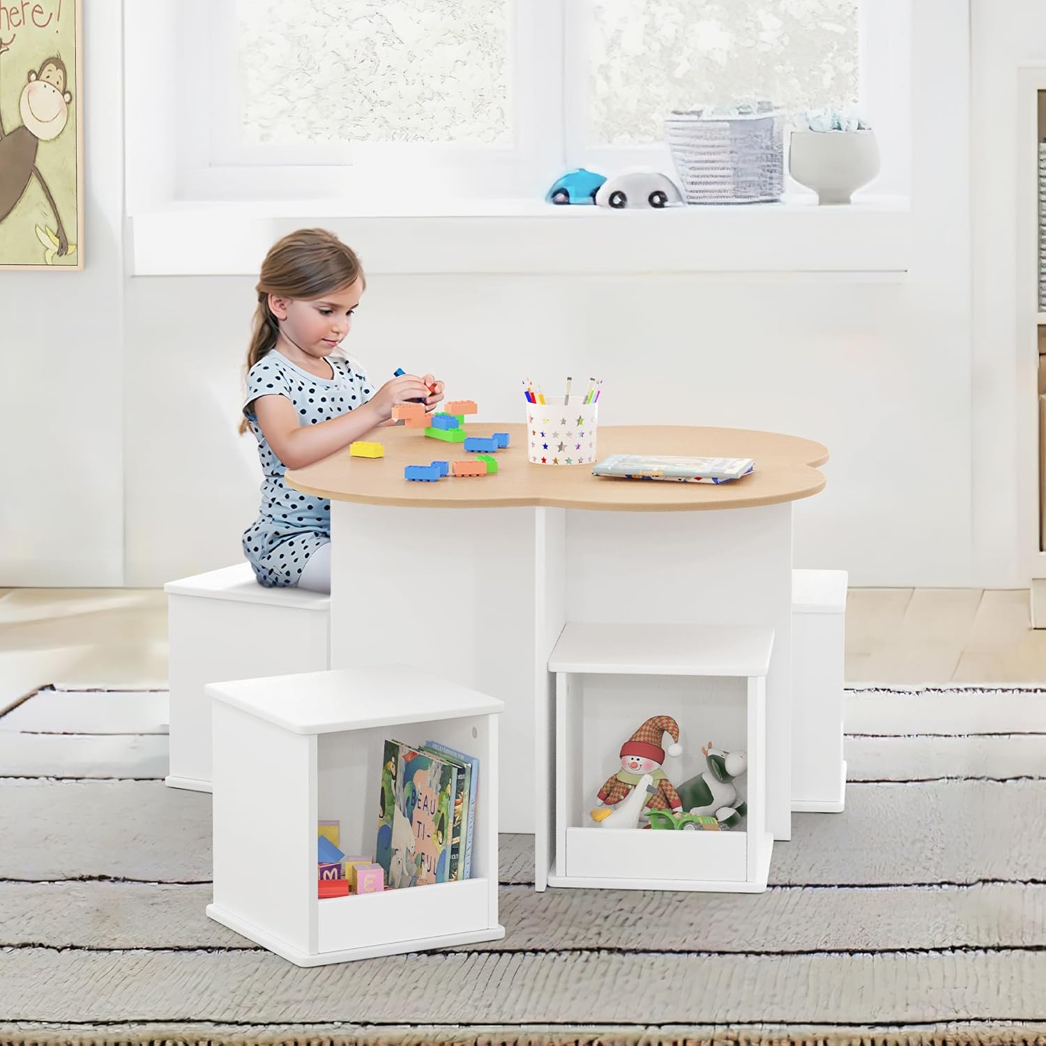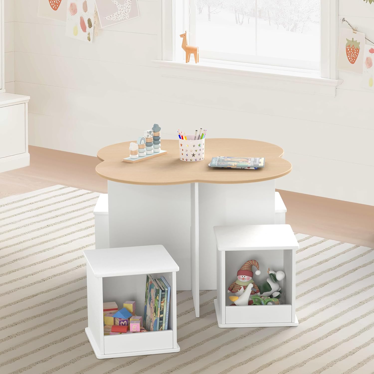 Avalon™ | Toddler Table & Chair Set – Flower-Shaped Design, 4 Storage Stools, Built-in Pen Holder