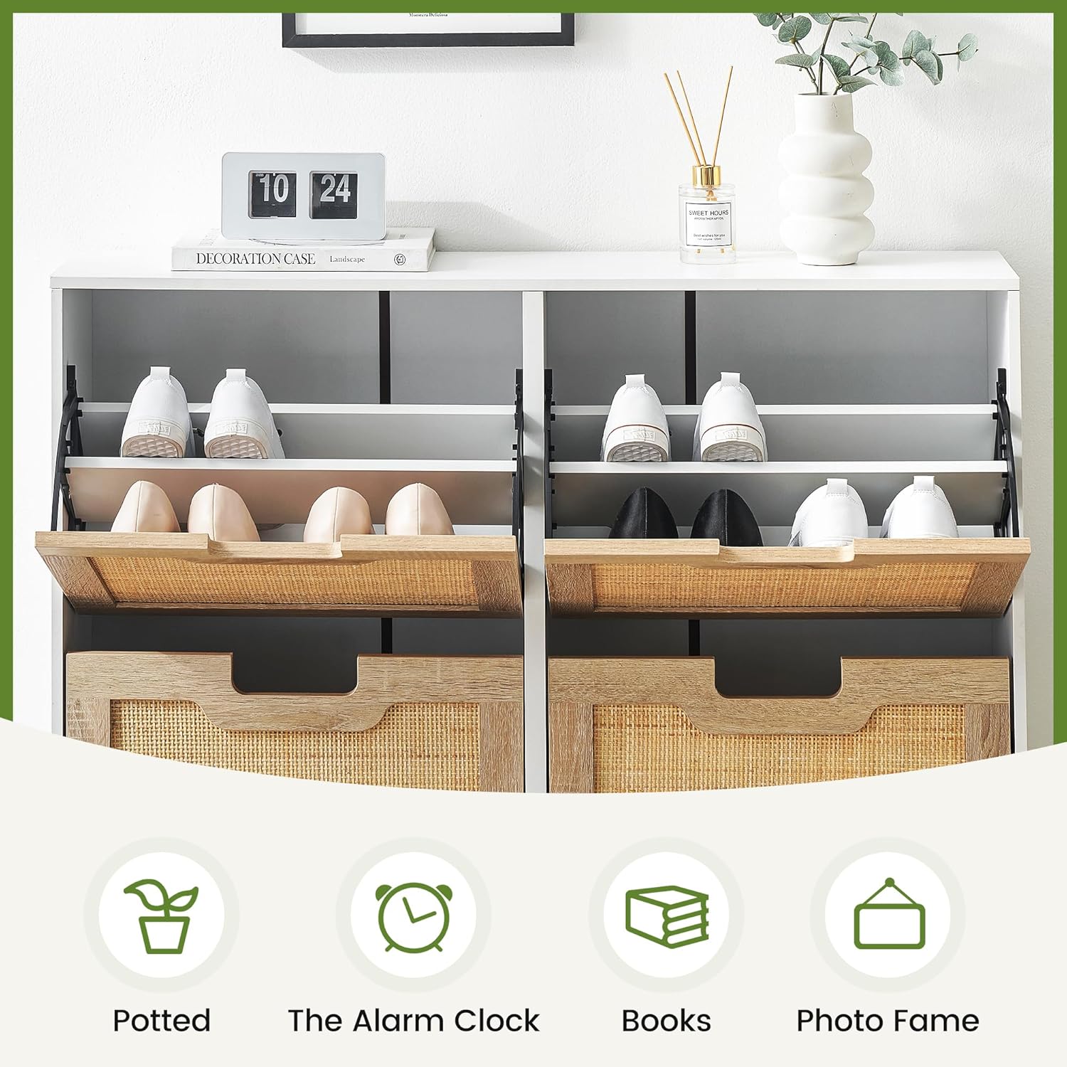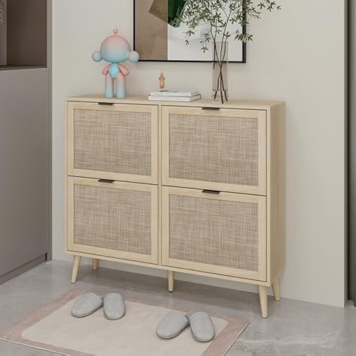 FlexiRack™ Rattan Shoe Cabinet is designed to keep your entryway organized while adding a touch of natural elegance. Featuring four spacious flip drawers, this cabinet provides ample storage for all your favorite footwear without taking up unnecessary floor space.