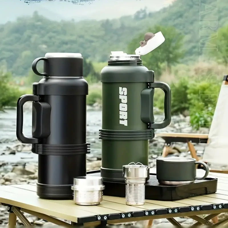 Hydroluxe™ | Stainless Steel Water Bottle – Vacuum Insulated, Bouncing Lid, Foldable Handle for Sports & Fitness