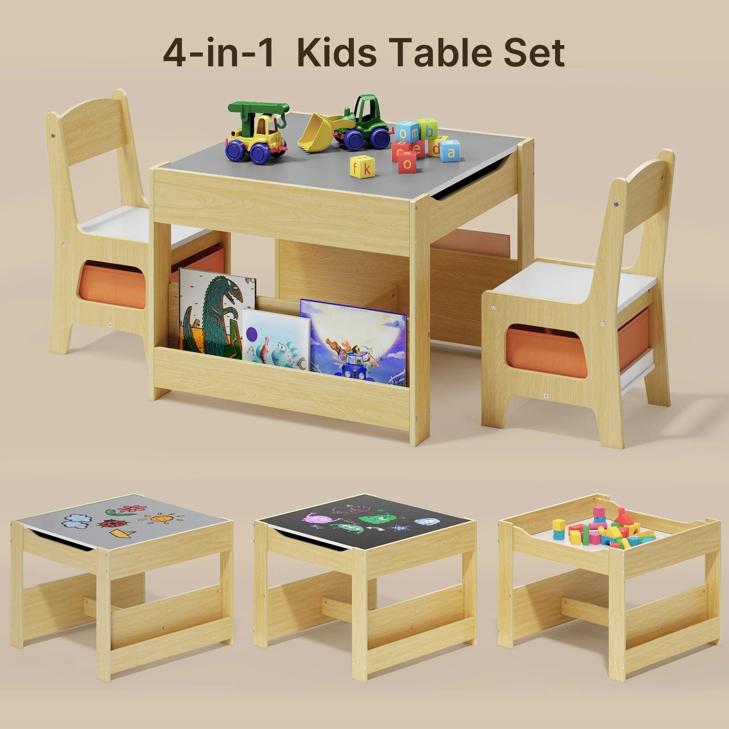 Playdra™ | Kids Activity Table – 4-in-1 Desk with Blackboard, Whiteboard & Storage Drawer