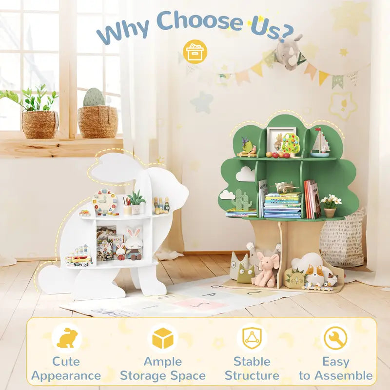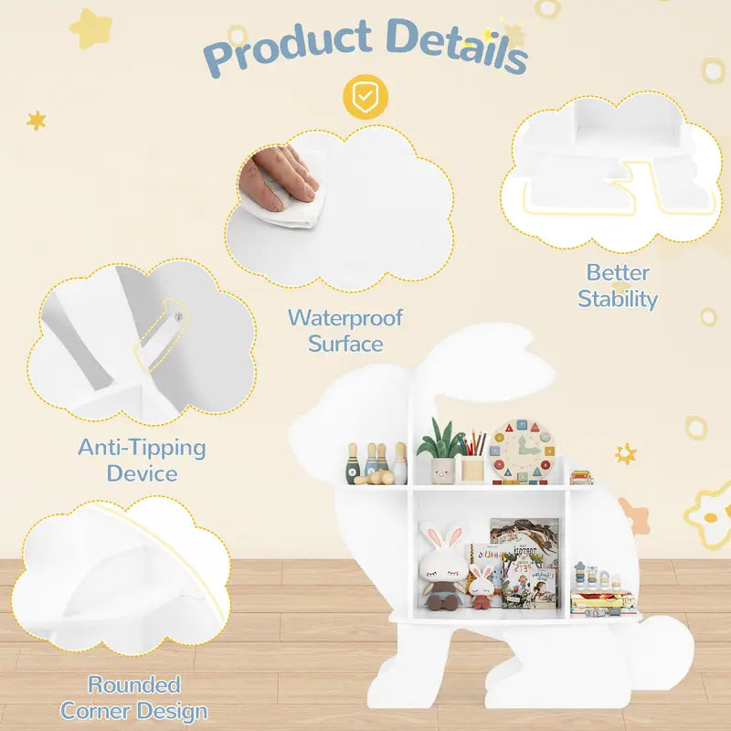 Rubbie™ | Rabbit Shape Bookshelf, Wood-Plastic, Stable Frame, Modern Storage